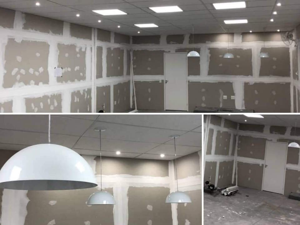 Alvenaria, Divisórias, Drywall, Gesso, Elétrica, Hidráulica, Pintura e Piso.